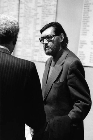 Después ya -casi cuando vamos a salir de la galería de Mordzinski – nos mira Octavio Paz desde su libro. Levanta los ojos de la página y nos agradece la visita.