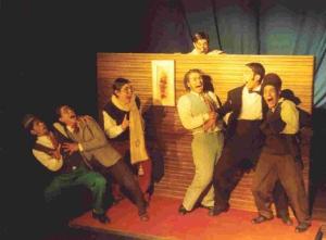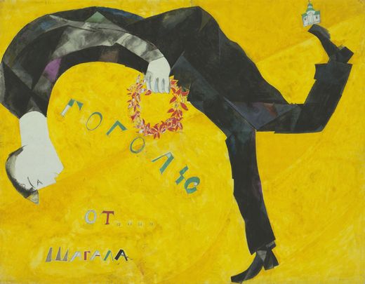 (Imágenes: Marc Chagall, «Homenaje a Gógol«.-moma.org/retrato de Gógol.-centros5.pntic.mec.es/ representación teatral de «La nariz»/ escena de «El inspector«, otra de las obras de Gógol.-escenicas.univable.edu.com)