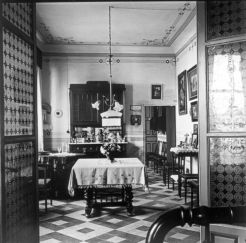 (Imágenes: fotografía de comedor antiguo/escena de «La familia», de Ettore Scola)