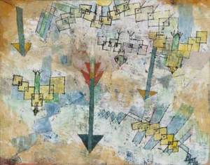 Las flechas que caen como pájaros desde el cuadro de Klee apuntan a cada inocente despavorido que huye ante los pájaros cayendo como flechas. Cada pájaro lleva en su alargado vientre la metralla rectilínea y el corazón está debajo corriendo hacia el refugio, buscando a ciegas el amparo. Nadie escapa al poderío de los colores, a las explosiones de Otto Dix, a los caballos de Franz Marc, a los fogonazos de Ludwig Meidner. Los caballlos y los cañones y las columnas de humo siembran de fealdad y de impureza paisajes apocalípticos. Vemos perfectamente la velocidad del sonido y oímos perfectamente el trazo del color. Nadie podía imaginar al lanzar las bombas, que debajo, mirándolas – sobre todo, pintándolas – estaban los artistas.