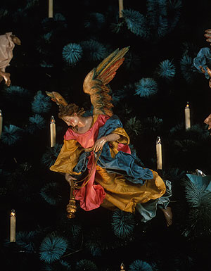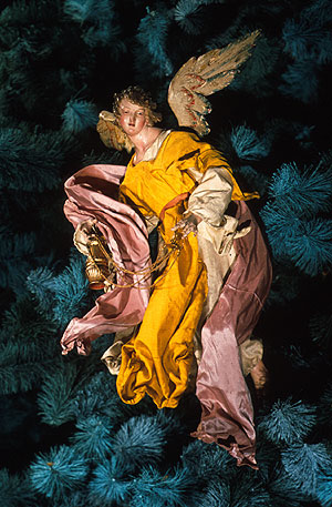 (Imágenes:- 1.- ángel.-Siglo XVlll, atribuido a Giuseppe Sammantino.-170-1739.-The Metropolitan Museun of Art of New York.-metmuseum.-org/2.-ángeles de la Natividad (detalle).-siglo XVlll .-Napolitano.-The Metropolitan Museum of Art of New York.-metmuseum.org/3.- ángel.-siglo XVlll.-napolitano.-atribuido a Giuseppe Sammantino.-170-1739/ 4.-abeto azul en una colección del siglo XVlll napolitano, con ángeles y querubines y entre sus ramas grupos de cifras realistas que flanquean la Natividad en su base.-representada en el Museo Medieval de Escultura Hall.-metmuseum.org)