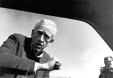 No nos decidimos a merendar hasta que el escritor no mete otra vez sus hojas en blanco en la cartera negra, hasta que no bebe un sorbo de agua y se levanta mirándonos con sus ojos muy vivos.