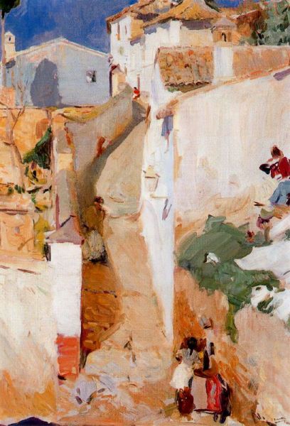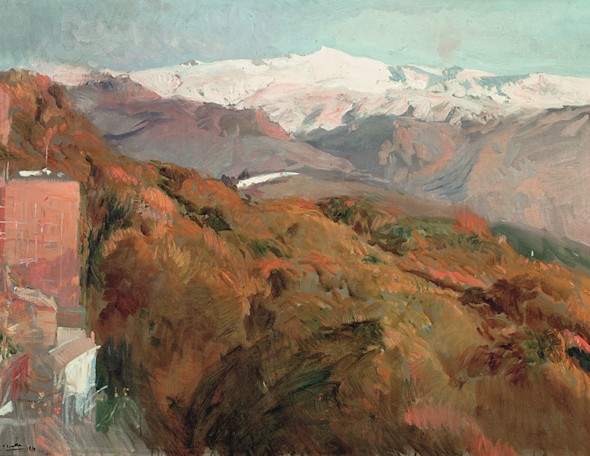 Treinta y tres años después de este texto de Castelar, el 22 de noviembre de 1909, Joaquín Sorolla le escribe desde Granada a su mujer, Clotilde, al acercarse a la ciudad para pintarla: «la llegada es de noche, y el coche te lleva largo rato cuesta arriba por estos laberínticos jardines, produciendo igual efecto que si entraras con los ojos vendados… y si mañana hay sol es maravilloso el espectáculo, pues si como me dicen hay una gran nevada en esta estupenda sierra, entonces no dudo superará esta vez a la primera que vine».