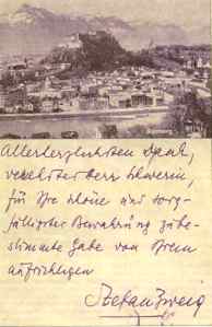 Zweig- bgu- postal con dedicatoria de Stefan Zweig- mil novecientos veintisite- wikipedia abril 19, 2017 / jjulio