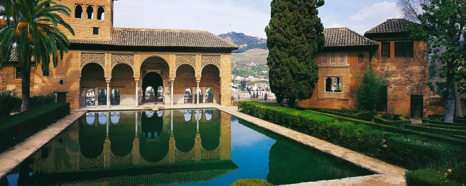 «Este palacio, aunque no muy grande – escribe el veneciano Andrea Navagero en su «Viaje por España» (1524- 1526) – es una edificación admirable con maravillosos jardines y sistemas de agua corriente, el más bello que existe en España. Tiene varios patios, todos con agua abundante, pero uno en particular con una acequia en el centro y repleto de espléndidos naranjos y arrayanes. Allí se encuentra una logia, que ofrece una panorámica hacia el exterior, y está situada bajo unos arrayanes de una altura tan impresionante que, prácticamente, se elevan hasta el balcón. Son tan frondosos, todos con copas igual de altas, que parecen un corredor cubierto de verde. El agua fluye por todo el palacio y, si se quiere, también por las habitaciones, algunas de las cuales son adecuadas para una exquisita estancia veraniega».