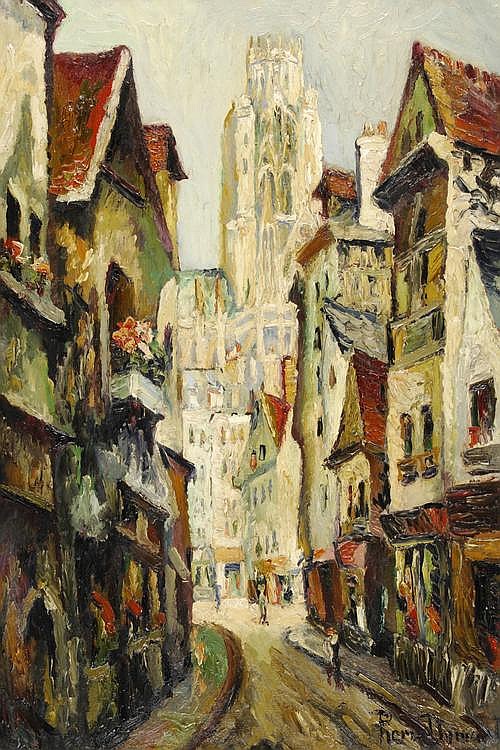 ciudades.- 45gtt.- Rouen.- Pierre Dumont.- 1884-1936.- calle y catedral de Rouen enero 21, 2018 / jjulio