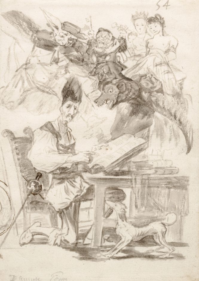 (Imágenes-1- Francisco de Goya – Don Quijote acosado por monstruos – the Brithis museum/ 2- Enric C Ricart – 1933/ 3- Cervantes – Juan de Jauregui- biografías y vidas)