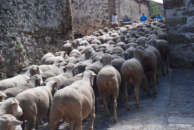 “Los rebaños entraban en Madrid- – describía Corpus Barga — por el puente de Segovia y subían por la cuesta de la Vega a la calle Mayor. Los faroles municipales que vistos desde abajo parecían pocos, menos numerosos y menos brillantes que las estrellas en la calle Mayor, aunque las luces de la ciudad de entonces parecerían ahora apagadas, deslumbraban a los pastores, excitaban a los mastines y amedrentaban a los carneros más que a las ovejas. Ellas eran las que parecían mantener el movimiento continuo del rebaño, estar acostumbradas a la noche artificial, en las trasnochadoras. El rebaño bajaba y subía a lo largo de la calle Alcalá, escoltado por los rudos mastines, seguido por los finos borriquillos cargados con las alforjas, las mantas, los calderos, los cuernos de aceite, y salía de Madrid cruzándose con el sol mañanero que por las Ventas del Espíritu Santo empezaba a ejercer su oficio de vendedor ambulante de rayos y clareaba los ojos de los pastores ciegos, sajaba las pupilas atragantadas de luces. Los pastores al salir de la ciudad se hubieran perdido en el campo sin la marcha ininterrumpida de los rebaños, el río de lana que iban siguiendo. Indiferentes no menos que las estrellas al mundo, el demonio y la carne, es decir, a los pastores y perros merineros, las ovejas noctámbulas seguían de día su camino, continuaban su trabajo, interrumpido sólo las horas precisas para reponerse, de producir lana fina. Los carneros andantes, como las ovejas andariegas, es natural, endurecían sus músculos, no daban carne buena y, en cambio, afinaban su lana, una de las grandes riquezas de España, la famosa lana merina.”