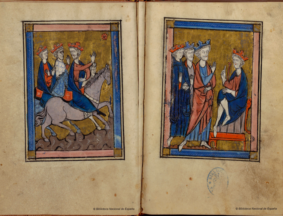 (Imágenes— 1- Rogier van der Weyden – tríptico de la Epifania – 1450- ge maldézalerie Belin/ 2 – imagen tomada del blog de Candela vizcaíno/ 3-auto de los reyes Magos/ 4- auto de la huida a Egipto- cervantes virtual/ 5- frontal de Aviá ( Museo Municipal de Barcelona) /6- Biblioteca Nacional de España)/