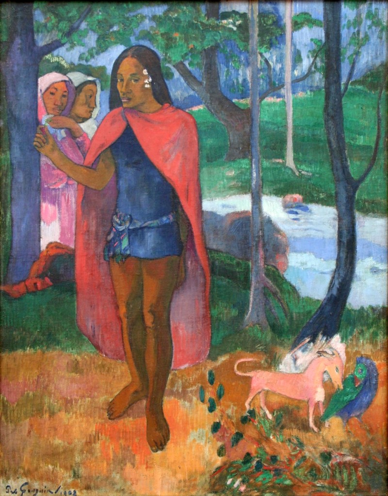 (Imágenes—1- Gauguin- paisaje de Martinica- 1887- scottish gallery/2- Hombre de Marquesas en Capa Roja 1902 – museo de arte moderno y arte contemporáneo de Liège)