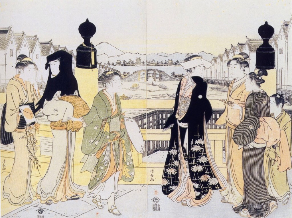 Durante muchos días estuvieron hablando los dos, Hisae y Utamaro. Hablaba y hablaba Utamaro y Hisae le escuchaba atentamente sentada allí en el suelo del taller, interesada por muchas cuestiones sobre el arte de la estampa, o cómo ,por ejemplo, se escogía el papel como soporte y la variedad de los motivos, también del colorido de los biombos, kimonos y abanicos, de cómo se inspiraban los artistas en los textos de los grandes libros clásicos, de su relación con los comerciantes de estampas entre los cuales se mezclaban los editores, de los ‘narradores ambulantes” de historias, de las ilustraciones para libros escogidos como ocurría con “Los cuentos de Ise”, de la unión entre pintores, grabadores y escritores para dar mayor vitalidad al arte de la estampa.