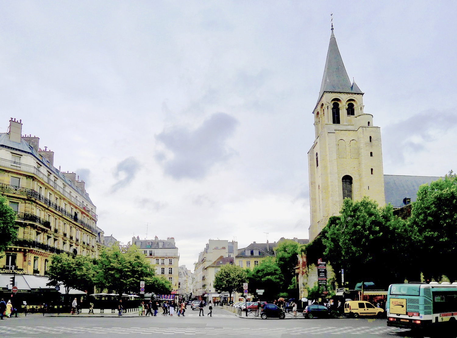 Entonces la cámara va lentamente hacia atrás, tal como me señaló mi madre al contármelo, y va dejando a un lado las mesas de la “brasserie” Lipp con sus asientos de piel púrpura, las cristaleras, los techos pintados por Garrey y los rincones que ocuparon hace siglos Verlaine y Apollinaire, pero sobre todo el olor a chucrut mezclado con el codillo de cerdo que humea en las mesas, aunque el olor no pueda transmitirse al cine, yo no podré, nadie puede, el cine es visión, sonido, pero no olor, aunque mi madre decía que aquellas noches, al salir de Lipp en compañía de mi padre, llevaba consigo durante mucho tiempo aquel olor crudo, ácido, de la col, que tanto le gustaba, y el sabor espumoso de la cerveza en sus labios. La cámara recoge, retrocediendo un poco, apartando al gentío que se asombra de que estemos rodando a estas horas una película, y ya vamos, lentamente, poco a poco, hacia la salida, hacia la calle, yo dirigiendo los enfoques que hace David, el fotógrafo, que retrata ahora el cercano mostrador dorado de Lipp donde un denso grupo de gente aguarda a que le designen mesa, porque esto está abarrotado como siempre, no tan abarrotado como me contaba mi madre en aquel viaje de novios de mis padres en París, con el bulevar Saint Germain iluminado, los cines repletos, la plaza de Saint- Germain con su histórica iglesia tan dibujada, las terrazas y toldos de “Les Deux Magots”, el blanco cruzar de las chaquetas de los camareros, el cielo azul y oscuro de París, pero cuando se está de viaje de novios, hijo, me dice mi madre, uno no ve más que manchas generales de las ciudades, no se acuerda de muchos detalles porque desaparecen enseguida, son sombras, zapatos, luces y sonrisas, yo tenía ganas de sentarme en un cine cercano para ver con tu padre “Un hombre y una mujer” de Claude Lelouch y oír la música de Francis Lai, con Anouk Aimée y Jean- Luis Tringtignant , una música cadenciosa, que me ha devuelto imágenes durante muchos años, me ha hecho bailar yo sola en la cocina, movía las piernas, movía la falda, olía otra vez la atmósfera de aquel París, y yo creo que todo esto tu lo sabrás crear muy bien en tu película, porque los directores, aunque seáis jóvenes, acertáis con las notas para conmover a la gente, así que olerás tú también Paris, olerás la atmósfera de aquel París que yo olía entonces, y que no venía del Sena, venía quizá de las profundidades, no sé, en un viaje de novios, hijo, no se aprecian los detalles, pasan rapidísimos, son manchas agrupadas, los tienes que descubrir tu como director, tienes que esforzarte para recrear el ambiente, y sobre todo mostrar en tu película, la somnolencia de una ciudad en un viaje de novios, una nube, ir de aquí para allá al lado de tu padre en volandas de la vida, tu padre entonces tenía un bigotito fino porque así era la moda, y yo, me acuerdo y no me acuerdo, no sé, no sé si te lo explico bien, iba con un vestido blanco vaporoso, aún no me había obsesionado con la idea de llevar pantalones, y entonces mi cámara sigue ahora a esa falda blanca de mi madre, que había cumplido el mes anterior veinticuatro años y era joven, rubia, despreocupada, recorría, cogida de la mano de mi padre, la noche de París, con unos tacones altos y elegantes como se llevaban entonces, y por eso filmo todo esto, así, con soltura, pero,también despacio, voy apartando a la muchedumbre que sale de Lipp y avanzo detrás del tiempo de mis padres, tan jóvenes, por Saint Germain des Pres, ruedo al fondo las casas de los intelectuales, las fachadas y la librería “La Hune” , a la que mi padre iba tanto y que ya no existe.