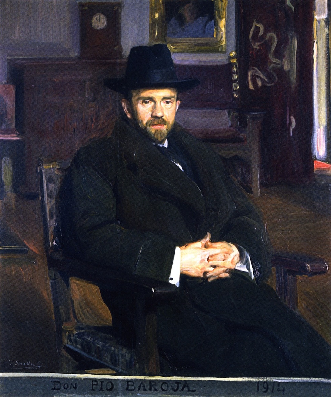 Baroja andando por los desmontes de Madrid en la época de “La busca” parece un aguafuerte goyesco. Embutido en un abrigo negro, ligeramente encorvado, el sombrero — negro también — bajo un cielo en contraste rayado, la claridad del papel de la vida y el rasgo del dibujo a carbón nos dan la pintura de este hombre de 32 años que avanza por los cortes del pesimismo, sobre los cascotes de la crudeza, esa frontera — no del “golfo” madrileño— sino del claroscuro entre el trabajador y el ocioso, el que formará en “La lucha por la vida” — la trilogía de “La busca “, “La mala hierba” y “Aurora roja”—el personaje central —Manuel — y su unidad novelística.