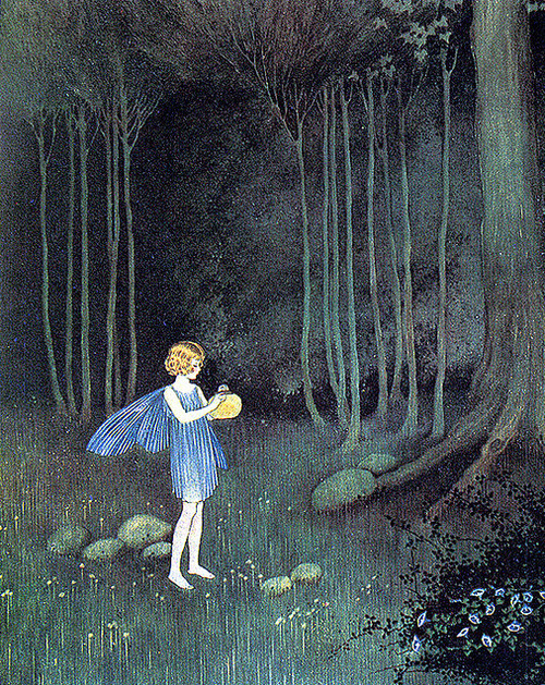 (Imagen:-1- Ida Outhwaite.– en la espesura del bosque/2.-Ana María Matute en la ceremonia de rececpción del Premio Cervantes en Alcalá de Henares.-elpais.com)