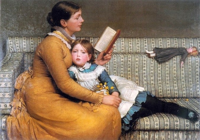 La voz de la madre narrará los cuentos, la voz de la madre subirá escaleras arriba hasta la cama de los hijos pequeños y adolescentes, las manos de esa madre abrirán un libro y acompañarán con ademanes la historia, los ojos de las madres leerán las palabras y la voz se afinará o se hará redonda en los diálogos, se hará puntiaguda o se hará grávida. Los ojos, las manos, las voces. También los padres dejarán su herencia en la lectura y en el narrar de las historias. El Premio Nobel de 2001, el novelista de nacionalidad británica, V.S. Naipaul, de origen hindú y nieto e hijo de emigrantes, aún mantendrá muchos años después la figura de su padre unida a la lectura en voz alta: