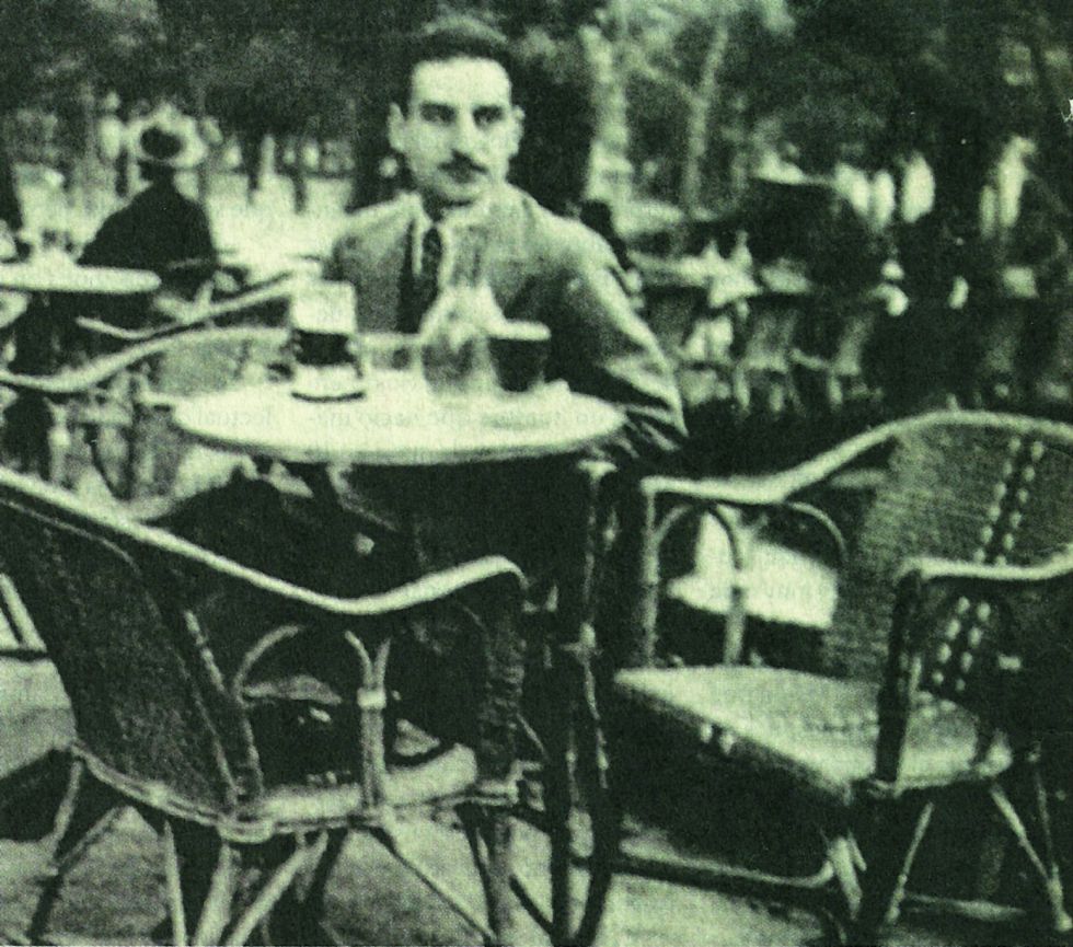 (Imágenes:- 1.-Café Gijón.-foto JJP.-2012/ 2.-Francisco Ayala, en la terraza del Café Gijón, en 1930)