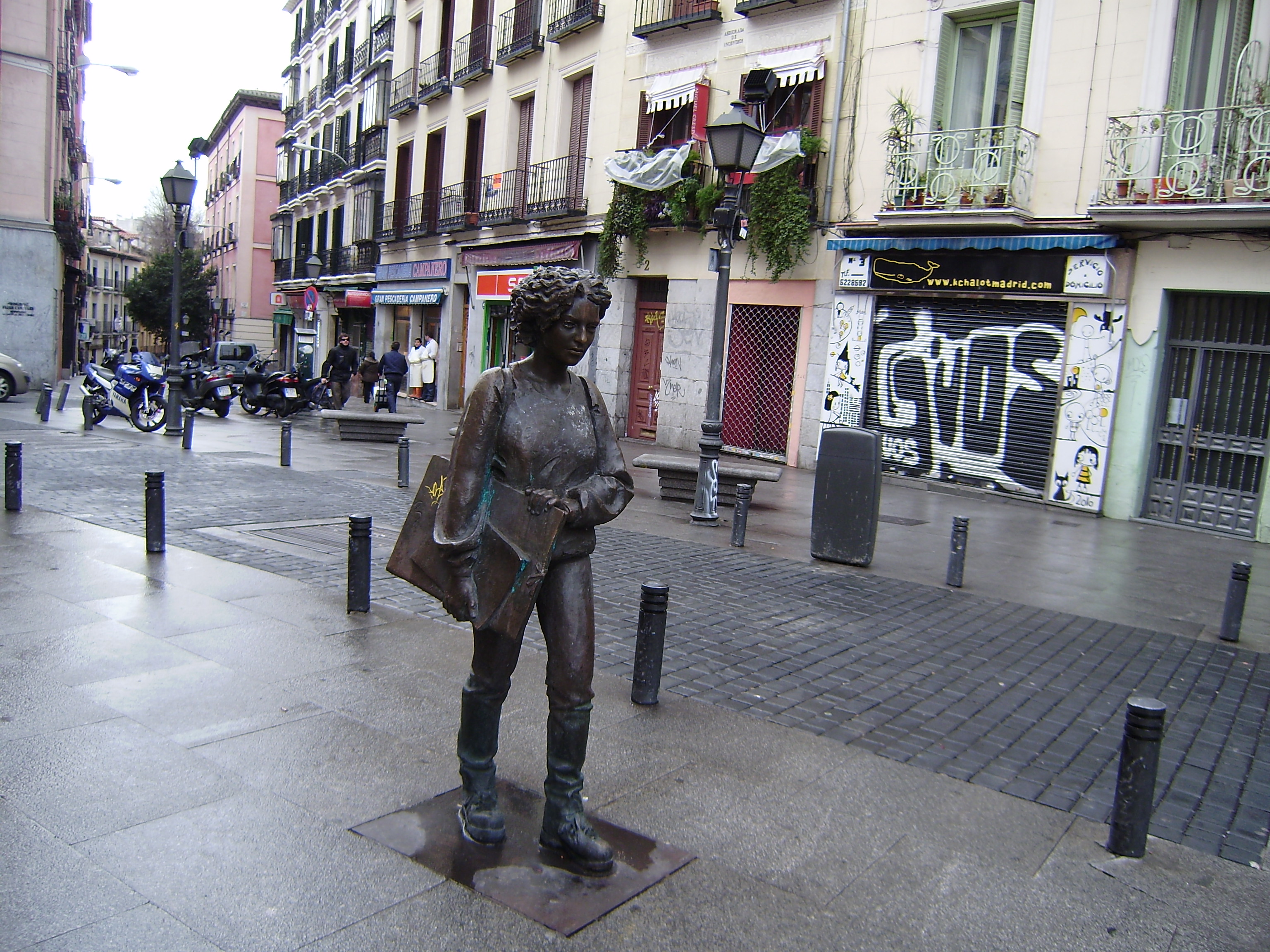 «Qué magnífico sería abarcar en un solo momento toda la perspectiva de las calles de Madrid – escribe Galdós desde la torre del periódico, desde la torre de la iglesia más alta de Madrid, la iglesia de Santa Cruz -; ver el que entra, el que sale, el que ronda, el que aguarda, el que acecha; ver el camino de éste, el encuentro, la sorpresa del otro; seguir el simón que es bruscamente alquilado para dar cabida a una amable pareja; verle divagar como quien no va a ninguna parte; verle parar depositando sus tórtolos allí donde un ojo celoso no se oculta entre el gentío; ver el carruaje del ministro, pedestal ambulante de dos escarapelas rojas, dirigirse a la oficina o a Palacio, procurando llegar antes que el coche del nuncio, mirar hacia la Castellana y ver la vanidad arrastrada por elegantes cuadrúpedos, midiendo el reducido paso como si el premio de una regata se prometiera al que da más vueltas; sorprender las maquinaciones amorosas que en aquel laberinto de ruedas se fraguan durante el momentáneo encuentro de dos vehículos; ver al marido y a la mujer arrastrados en dirección contraria, rodando el uno hacia el naciente y el otro hacia el poniente, permitiéndose, si se encuentran, el cambio de un frío saludo; ver la gente pedestre en el paseo de la izquierda contemplando con envidia la suntuosidad del centro; seguir el paso incierto del tahur que se encamina al garito; ver descender la noche sobre la villa y proteger en su casta oscuridad la pesca nocturna que hacen en las calles más céntricas las estucadas ninfas de la calle de Gitanos; oir la serenata que suena junto al balcón y contemplar la rendija de luz que indica la afición musical de la beldad que vela en aquella alcoba; esperar el día y ver la escuálida figura del jugador que, tiritando y soñoliento, entra en el café a confortarse con un trasnochado chocolate; (…) ver de quién es el primer cuarto que recoge el ciego en su mano petrificada; ver salir de una puerta un ataud gallegamente conducido, y saber dónde ha muerto un hombre; ver salir al comadrón y saber dónde ha nacido un hombre; ver…, pero a dónde vamos a parar.