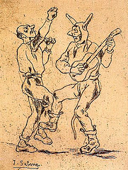 Así describe Gutiérrez Solana a los carreteros de Tembleque en su libro «La España negra«. Ahora que acaba de publicarse una nueva edición de esta obra (Comares), que recoge los Viajes por España y otros escritos, el pensamiento se me va a los días en que leí mi tesis doctoral en la Universidad Complutense de Madrid hace ya muchos años sobre el tema «La muerte en la obra literaria de Gutiérrez Solana«. Dirigida por un gran catedrático y luego gran amigo mío, Francisco Yndurain,  expuse en aquellas páginas la vida y la obra del pintor-escritor, muerto en 1945 a los 59 años de edad que entre Santander y Madrid, su hermano Manuel y el café «Pombo», cantaba a voz en grito y no con mala voz, rociando de vez en cuando la existencia con el sabor de la botella. Los principales biógrafos y comentaristas de Solana dejan fuera de duda su derecho deseo sin ninguna concesión a «ser leal consigo mismo», honrado en su quehacer de artista, y, sobre todo, en presentar desnuda su verdad, sin afeites ni arreglos, monda y lironda, aunque a muchos desagradase.