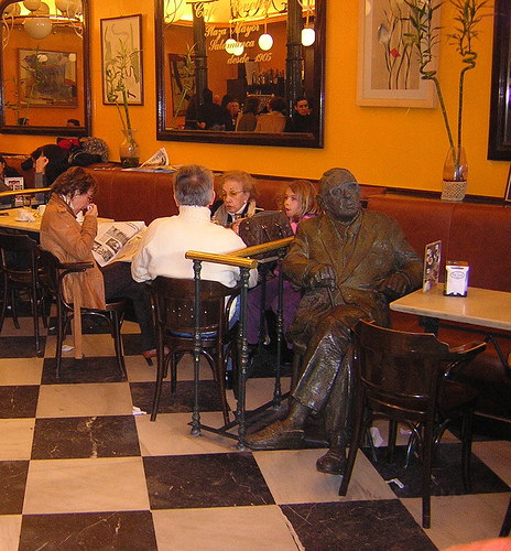 «La tertulia no tenía prisa ni inquietud – escribe Ramón Gómez de la Serna -.(…) Y en ese medio azulado, la improvisación es ágil, y nos queremos acordar después de lo que hemos dicho, favorecidos por esa agilidad que da el agua propicial a los movimientos y a los desperezos frenéticos de la imaginación. Sólo en un grande hombre que posee las llaves de las grutas maravillosas ha podido permitirnos ese goce de la levitación.