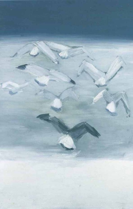 Hojas de calendario que se desprenden de las paredes de las cocinas, de los humos, de los hornos, de las comidas. Salen por las ventanas a los patios, empiezan a revolotear cargadas de fechas y tareas, proyectos, marcas, señales, recuerdos en rojo, avisos, lo que se hizo, lo que aún hay que hacer, tachaduras, cruces. Vuelan y vuelan por los patios, se unen a otras hojas que vienen de otras cocinas en países y en idiomas distintos y todas van al mar. De pronto el mar se cubre de hojas de calendario blancas y azules como veleros, que también parecen pájaros con señales en los lomos, cada hoja te cuenta la historia y vicisitudes de una familia, los barcos ven pasar las hojas porque pasa el tiempo y el tiempo lleva números y nombres en las alas, días de la semana que volaron, lo que se hizo y lo que se dejó de hacer.. Pocas veces se ve un mar tan lleno de miércoles en el cielo y de sábados tachados y cruzados entre nubes, las hojas muestran los días e incluso las horas en que se vivió, cómo se vivió, los aniversarios, los nacimientos, las bodas. Se ve en el mar, sobre las hojas de calendario, de qué forma se disfrutó aquella tarde bailando todos en familia, las declaraciones que hubo de amor, sollozos contenidos, despedidas. Luego las hojas de calendario se van, vuelven revoloteando por los patios de las casas en el horizonte y alguna incluso entra de nuevo en su cocina y se vuelve a colocar, como si nada hubiera pasado, sujeta a la pared.